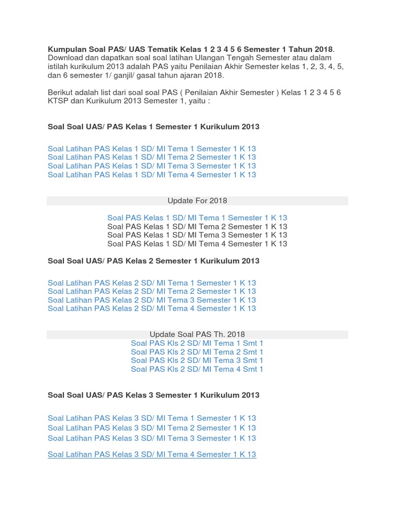Feb 28, 2021 · download bank soal sd kelas 1,2,3,4,5,6 kurikulum 2013 revisi 2018. Soal matematika kelas 1 sd semester 2. Semuanya merupakan akumulasi dari semester 1. Kurikulum 2013 (k13) cukup memberikan dampak luar biasa pada tatanan pendidikan, khususnya pendidikan yang ada di sekolah dasar atau madrasah ibtidaiyah (sd/ mi), salah satunya yaitu penerapan pembelajaran tema. Kumpulan soal ips kelas 6 sd semester 2 genap dan kunci jawabannya 7 juni 2017 17 juni 2020 bimbingan belajar brilian 1 komentar kali ini admin ingin membagikan kumpulan soal ips kelas 6 enam sd lengkap semester 2 dilengkapi kunci jawabannya.