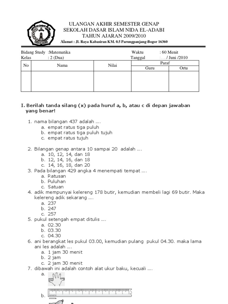 Soal latihan matematika kelas 2 sd.