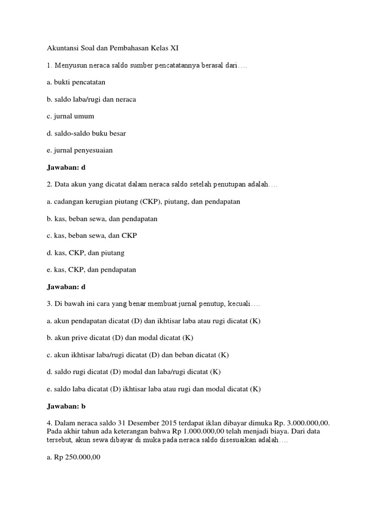 Jun 08, 2021 · soal dan jawaban akuntansi keuangan kelas 11 semester 2. Soal akuntansi keuangan kelas xi smk semester ganjil 1. Ikatan kimia (ion, kovalen dan logam). May 03, 2021 · 1 10 soal uas ekonomi kelas 11 semester 2 kurikulum 2013 dan jawaban. 7 responses to soal pilihan ganda akuntansi lembaga dan jawaban sobat sehat january 5 2019 at 1216 am.