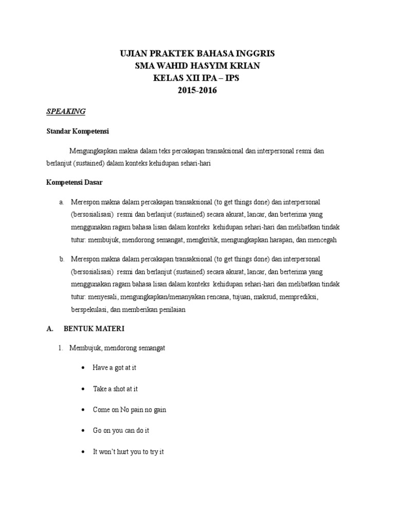 Ujian Praktek Kelas Ix Smpn 2 Cangkringan from smpnegeri2cangkringan.sch.id Akan dipungut biaya, tetapi tidak mahal. Pada kesempatan kali ini kami ingin memberikan rangkuman materi pelajaran bahasa inggris untuk sma kelas 12 semester 1 dan 2. Documents similar to materi bahasa inggris kelas xii. He was it became the mountain of tangkuban perahu. Klik link dibawah ini untuk download contoh modul bahasa inggris kelas 12 sma demikian yang dapat ibi sampaikan pada kesempataan kali ini, semoga dapat bermanfaat dan dapat dijadikan sebagai bahan atau panduan mengajar bahasa inggris sma kelas 12. Ukuran kertas a4 margins kertas atas kiri 4 cm bawah kanan 3 cm jenis font : Mendiskusikan materi bersama siswa (buku : 2 ujian praktek bahasa indonesia 2015/2016 berbicara berpidato denganmetode (menghafal) tanpa teks dengan tema: